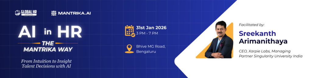 We’re excited to announce an upcoming conversation on how AI is redefining the future of people, performance, and organizations hosted by the Global HR Community and proudly sponsored by Mantrika.ai.
